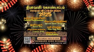 Atlanta Tamil Mandram invites you all to our Grand Deepavali Celebrations! Event Highlights: Free admission for ATM Members & stay tuned for more details. * Aadal Paadal – Cultural activities