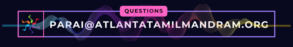 We are thrilled to introduce new initiatives at Atlanta Tamil Mandram (ATM) that highlight and celebrate the rich legacy of ancient Tamil music through the powerful and universal rhythm of parai. This program offers a chance for all members to connect with a vital part of our cultural heritage and share in the communal experience that parai provides.