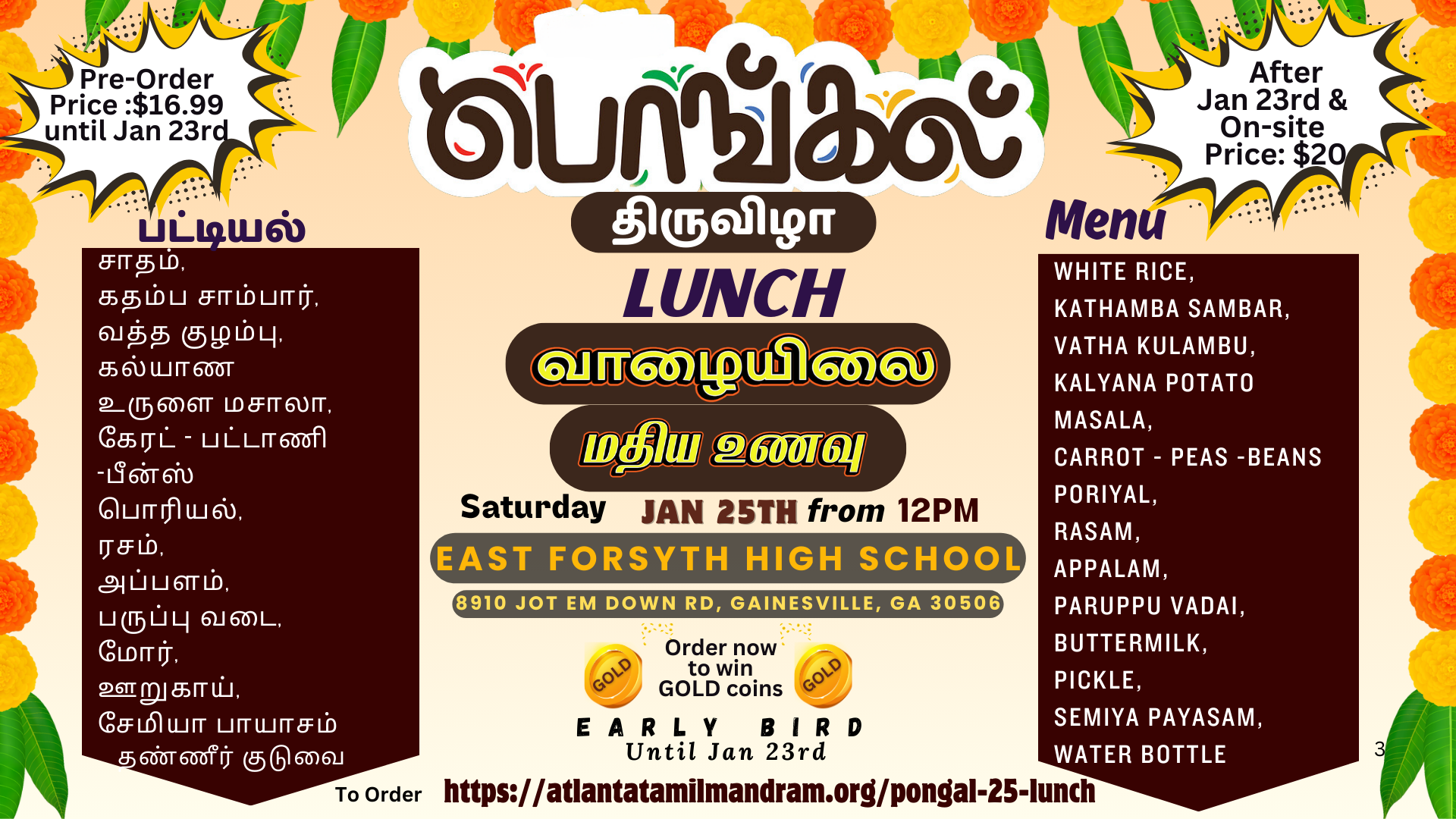 Please pre-order Lunch by 1/23/25 After Jan 23rd and Limited Onsite sale of the Lunch will be $3 more than pre-order. ONLINE LUCNH ORDER CLOSED NOW – Check @ Onsite DESKFood truck will be available onsite for Dinner, Snacks and Refreshments.